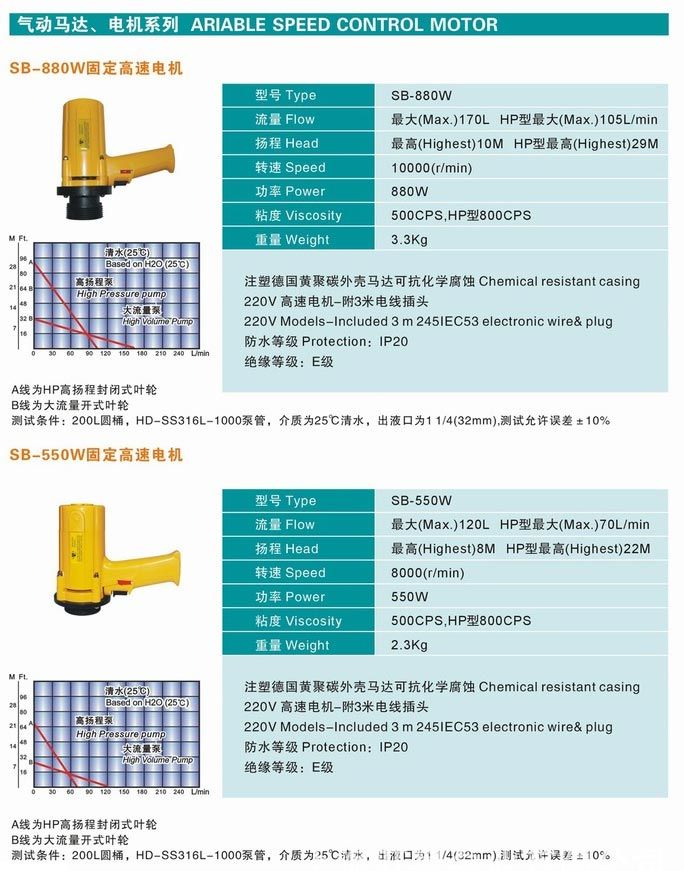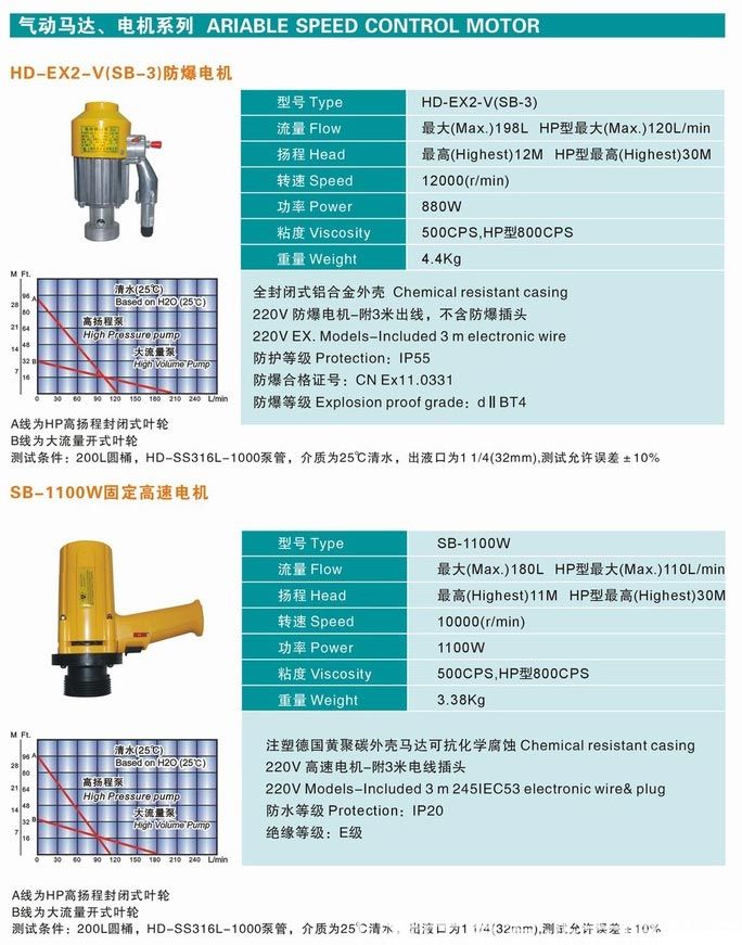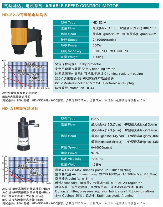 意嘉HD耐腐蝕電動抽液泵根據所輸送的液體性質,泵體沾濕部分材料可選用鋁合金、優質不銹鋼,增強聚丙烯等組成。驅動電機配備單相標準電機,防爆電機,高轉速電機等多種選擇。電機外殼采用優質PC聚碳合成塑料,根據所配置泵體材質和電機的不同,型號可分為三大系列10種型號,該系列泵可按防爆區域和非防爆區域選用,如在易燃易場合使用,可選用我公司生產的防爆型電動抽液泵。使用防爆型電動抽液泵時應按GB38361-2《爆炸環境用防爆電氣設備》有關規定并正確使用防爆插頭插座。RPP塑料:非極性、無污染、有耐酸堿鹽類等腐蝕性化學液體。工作溫度:-14~100℃。