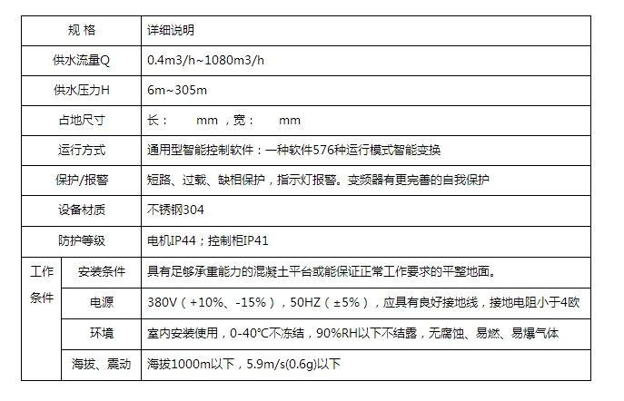 恒壓變頻供水設備產品規格: