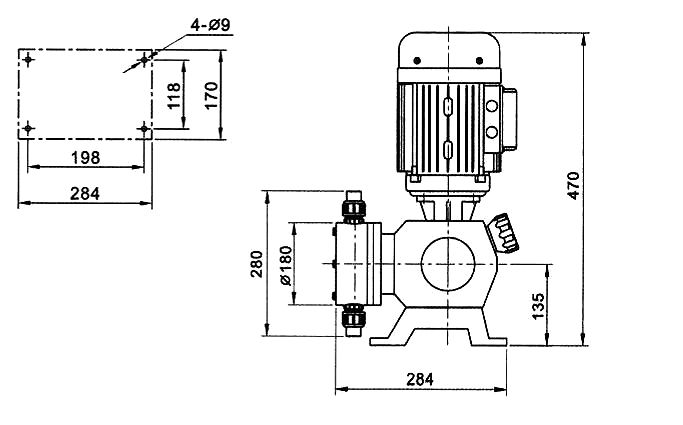 JMZ系列隔膜式計(jì)量泵外形安裝尺寸圖: