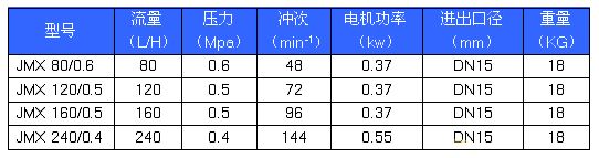 JMX型精密機械隔膜計量泵參數(shù):
