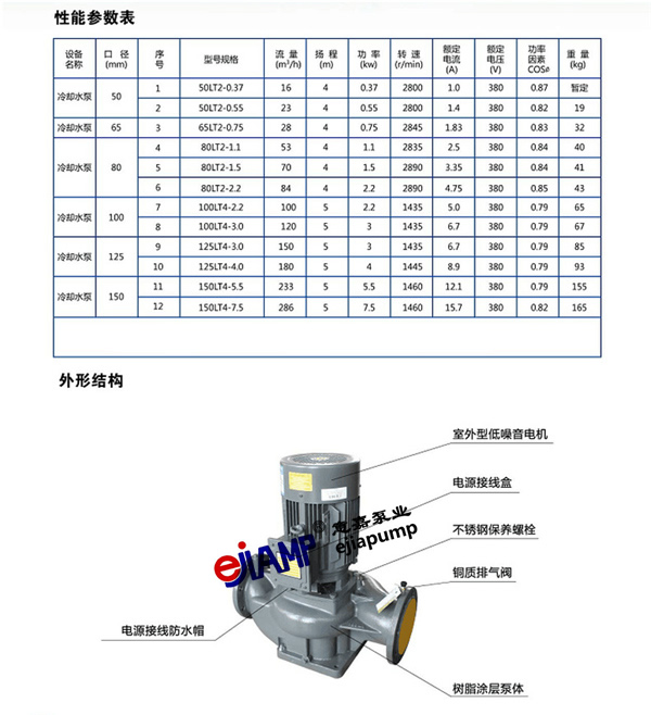 Ejiamp/LT 冷卻塔專用水泵是一款大流量低揚程的離心泵,在經上海意嘉泵業技術人員研發改進的新一代產品,通過科學設計水力模型,采用先進生產工藝和零配件材質,從而達到明顯的節能效果。