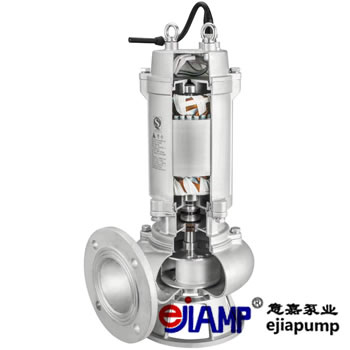 WQP型 不銹鋼潛水排污泵是在引進國外先進技術的基礎上,上海意嘉泵業結合國內水泵的使用特點而研制成功的新一代泵類產品,具有節能效果顯著、防纏繞、無堵塞、自動安裝和自動控制等特點。在排送固體顆粒和長纖維垃圾方面,具有獨特效果。該系列泵采用獨特葉輪結構和新型機械密封,能有效地輸送含有固體物和長纖維。葉輪與傳統葉輪相比,該泵葉輪采用單流道或雙流道形式,它類似于一截面大小相同的彎管,具有非常好的過流性,配以合理的蝸室,使得該泵具有效率高、葉輪經動靜平衡試驗,使泵在運行中無振動。