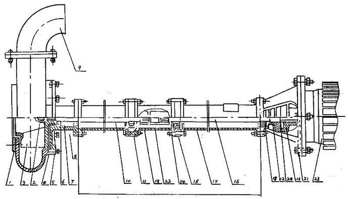NL型泥漿泵系單級液下泵沿用國內先進的工藝技術研發生產,主要部件有蝸殼、葉輪、泵座、泵殼、支撐筒、電機座、電動機等組成。蝸殼、泵座、電機座、葉輪螺母是生鐵鑄造、耐腐性、耐腐蝕性較好,加工工藝方便。葉輪為三片單園弦彎葉,選用半封閉葉輪,并采用可鍛鑄鐵、所以強度高,耐腐蝕;加工方便,通過性好,效率高。為了減輕重量和減少車削量、泵軸是優質碳素鋼冷拉園鋼制造。座中裝有四只骨架油封和軸套,防止軸磨損,延長軸的使用壽命。污水泥漿泵可垂直或傾斜使用,占地面積小,蝸殼需埋在工作介質中工作,容易啟動,不需弓I水,旋轉方向應從電機尾部看是順時針方向工作。總機長度備有各種規格,以便使用單位根據用途因地制宜地選用。