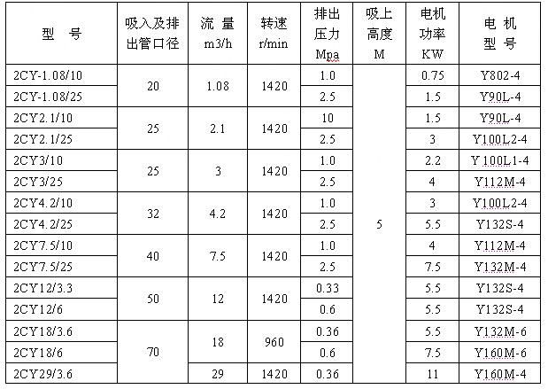 2cy齒輪式輸油泵性能參數: